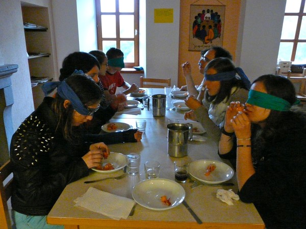 - à découvrir qu'en ayant les yeux bandés lors d'un repas leurs autres sens se déployaient... : l'ouïe, l'odorat, le goût.