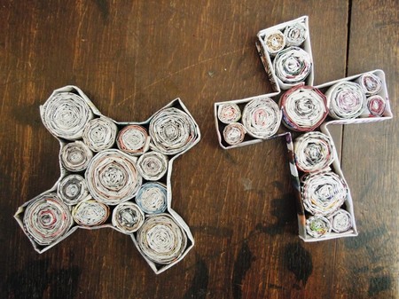L'après-midi, plusieurs ateliers sont proposés : balade, peinture, terre et confection de croix à l'aide de bandes de papiers roulées.